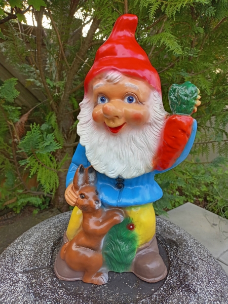 Gartenzwerg mit Hase, 45 cm hoch
