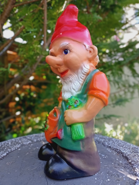 Der Gartenzwerg schaut sorgsam zu Ihren Blumen.