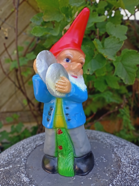 Hätte dieser Musiker- Gartenzwerg mit Becken Ton, wäre er eine Bereicherung für die ganze Nachbarschaft.