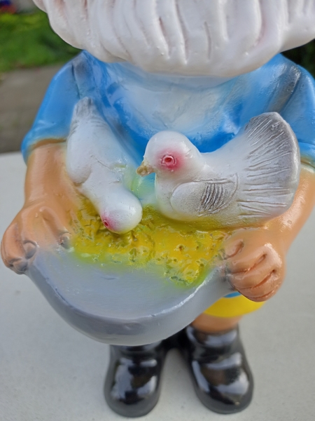 Gartenzwerg füttert Tauben, 32 cm hoch