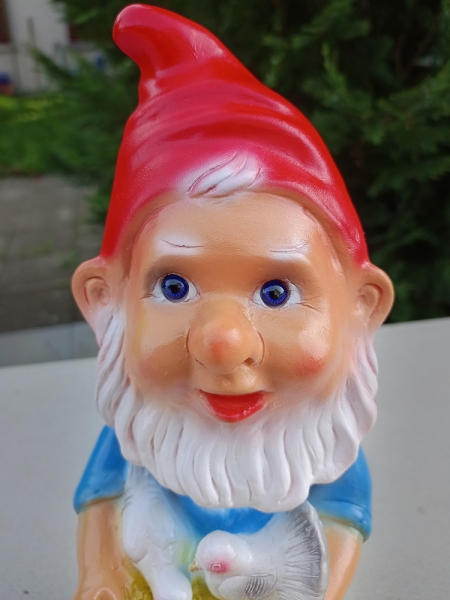 Der Gartenzwerg, der hier Tauben füttert, ist eine hübsche Gartendekofigur
