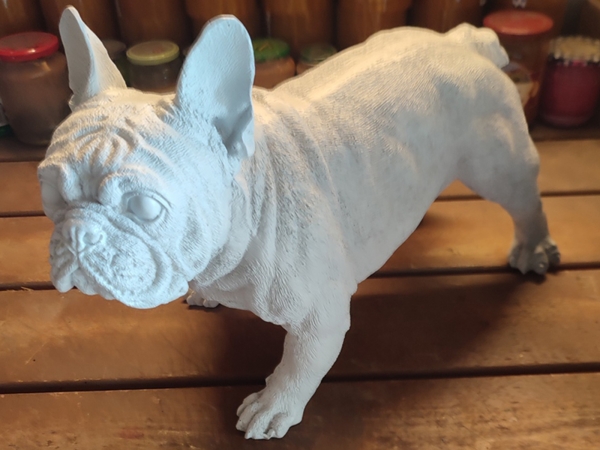 Dekohund Englische Bulldogge stehend, weiss grundiert zum selber bemalen.