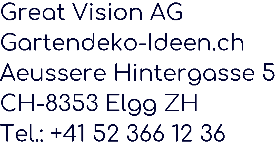 Zur Weihnachtsdeko Home Gartendeko Impressum E-Mail: info@ gartendeko-ideen.ch www.gartendeko-ideen.ch Gartendeko Ideen & Gartenfiguren