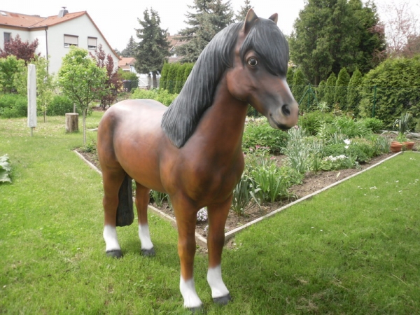 Lebensgrosses, braunes Island-Pferd als Gartenfigur