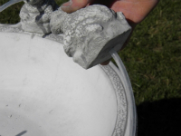In der Mitte befindet sich ein Stöpsel aus Weichgummi, dem man ziehen kann um das Wasser ab zulassen.