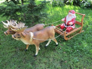 Dieses schöne Deko Rentier passt hervorragend zum kleinen oder mittelgrossen Schlitten mit Weihnachtsmann als Gartendekoration zu Weihnachten.