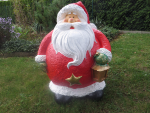 Grosser dicker Weihnachtsmann für den Garten outdoor. Eine schöne, grosse Weihnachtsmann Gartendeko.