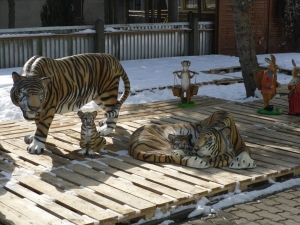 Lebensgrosse Tigerfamilie als Dekofiguren für den Garten im 3-er Set