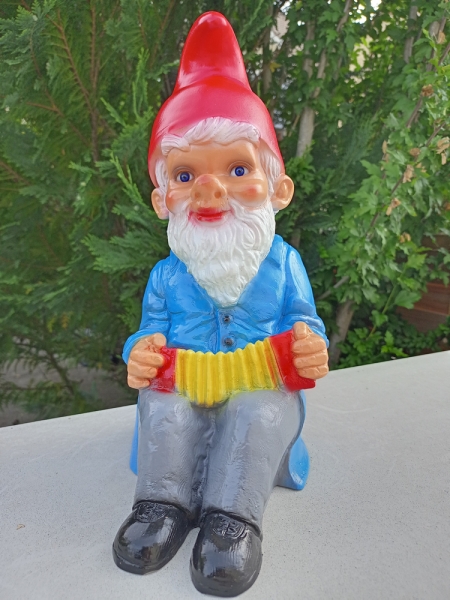 Handharmonika spielender Gartenzwerg als Aussendeko im Garten, auf der Terrasse und auf dem Balkon und für die Innendeko in der Wohnung.