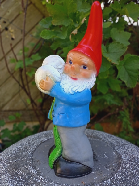 Hätte dieser Musiker- Gartenzwerg mit Becken Ton, wäre er eine Bereicherung für die ganze Nachbarschaft.