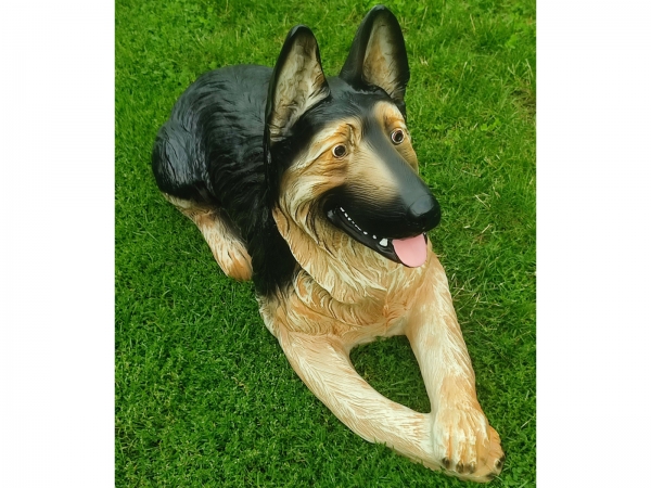 Der liegende Deutscher Schäfer, Hundefigur Deko als Wohnungsdekoration oder Gartendekoration ist gewiss ein Blickfang.